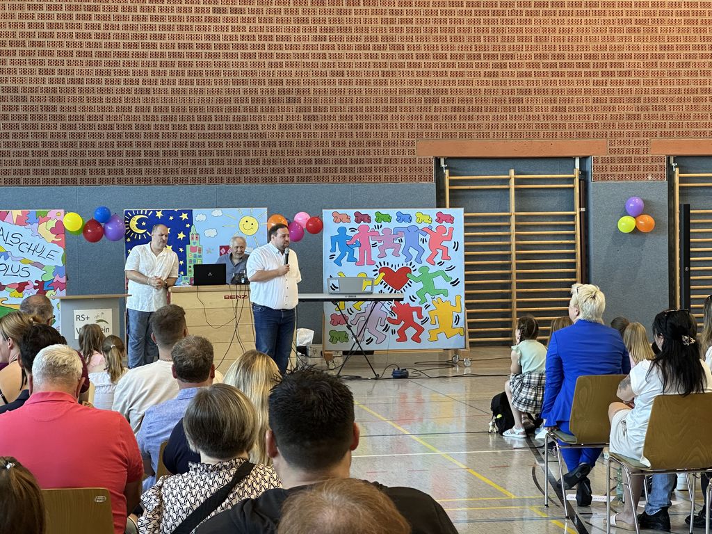 Der Vorsitzende des Fördervereins der Wöllsteiner Schulen, Michael Weinz, stellte kurz die Arbeit des Fördervereins vor und bescherte anschließend den vier Klassenkassen ein schönes Startkapital von jeweils 100€. Die stellvertretende Vorsitzende des Schulelternbeirates, Frau Baumgart, bestärkte die „neuen“ Eltern in der Wahl ihrer Schule und lobte die gute Zusammenarbeit zwischen Eltern, Lehrkräften und Schulleitung.