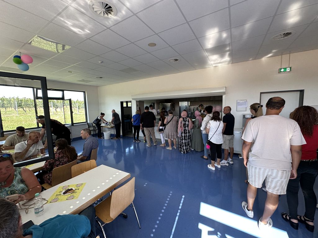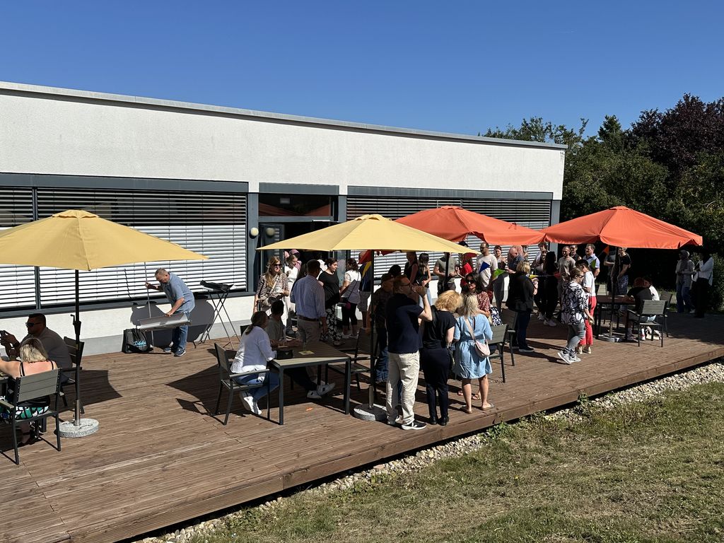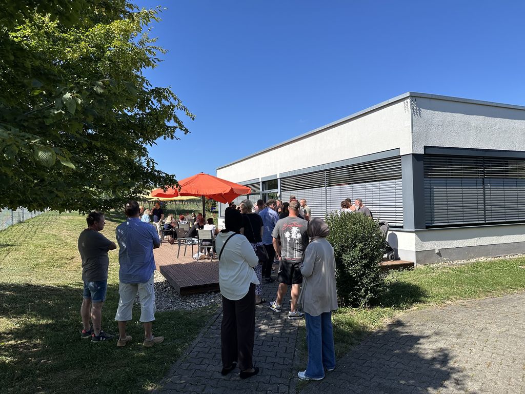 Die Eltern warteten in der Zwischenzeit auf der Mensaterrasse und konnten sich untereinander etwas kennenlernen, Schüler mit Verantwortung (SmV) organisierten kühle Getränke. Als Ansprechpartner stand zudem die Schulleitung zur Verfügung.