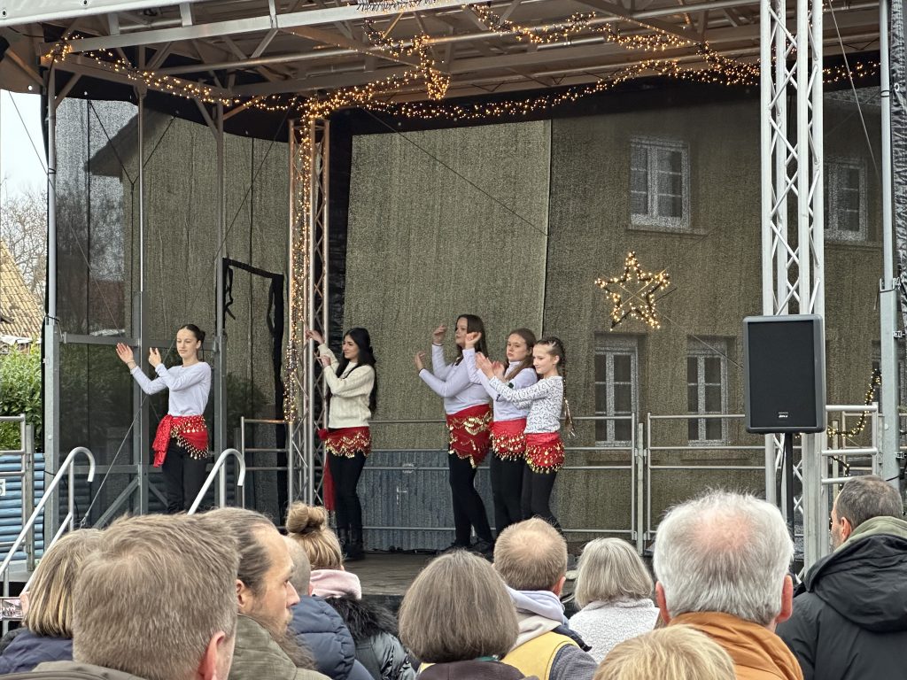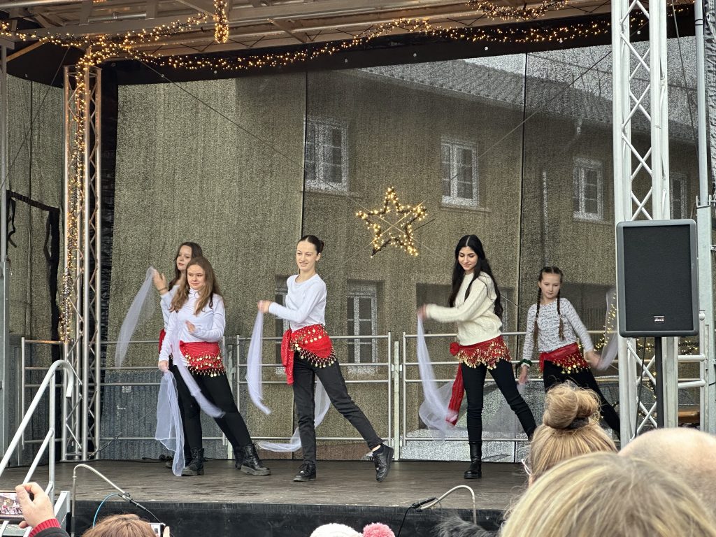 Die Realschule plus Wöllstein war in diesem Jahr wieder mit zwei Beiträgen auf dem Wöllsteiner Weihnachtsmarkt vertreten. Das Sonntagsprogramm eröffnete um 14:00 Uhr unsere Bauchtanz-AG unter Leitung von Alexandra Decker-Jack mit zwei einstudierten Tänzen. Um 15:00 Uhr zeigte unsere Tanz-AG unter Leitung von Tobias Röhlich ihr Können und begeisterte ebenso das Publikum, dass nicht mit Applaus sparte.
