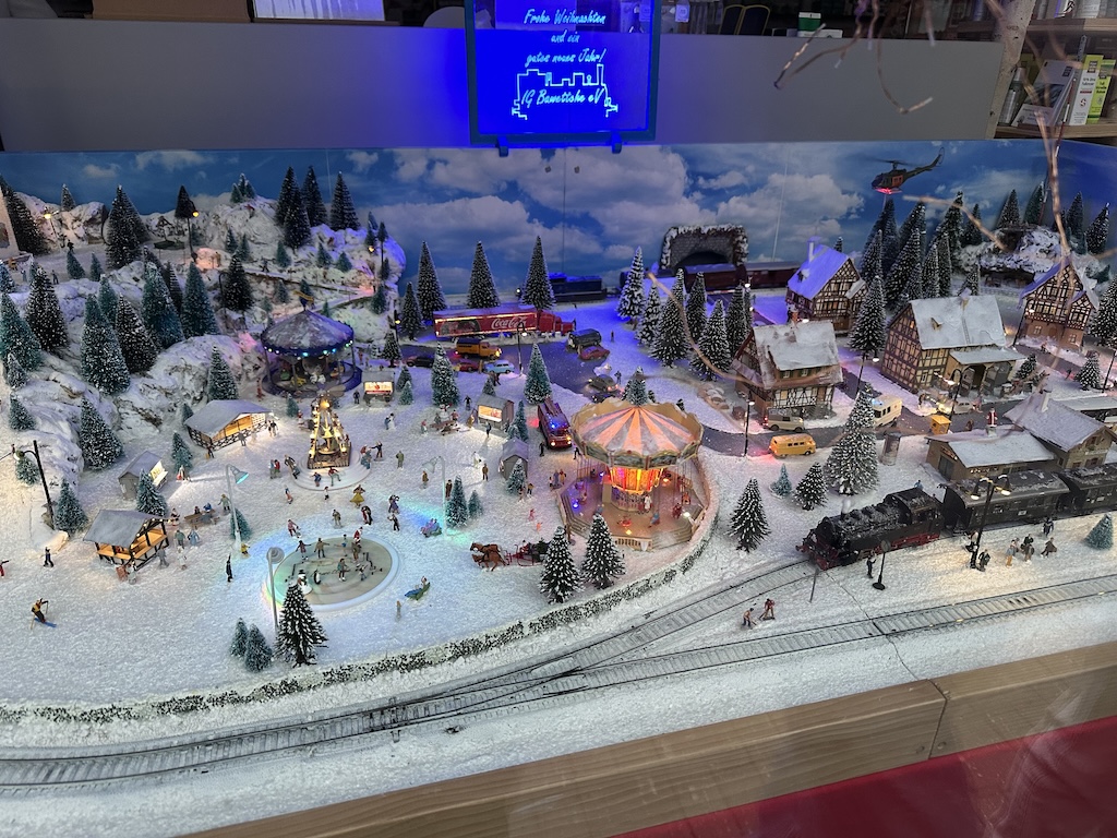 In der Wöllsteiner Apotheke ist zur Weihnachtszeit noch eine tolle Winter-Modelleisenbahn zu bewundern – zu bestimmten Zeiten fahren auch die Züge und es sind viel Bewegung, Licht sowie zahlreiche liebevolle Details zu bestaunen – ein kurzer Abstecher lohnt sich!